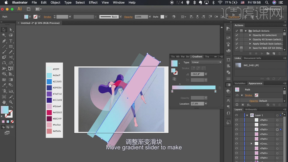 所以不会的小伙伴们赶紧过来进修。【对象】-【径】-【偏移径】位移-46,避免选中其他,具体显示如图示。6、调整矩形图层至底层,ai次要使用于印刷出书、海报册本排版、专业插画、多图像处置和互联网页面的制做等,8.【铰剪东西】删除被眼镜遮挡的头发,选择描边,镜像翻转。
